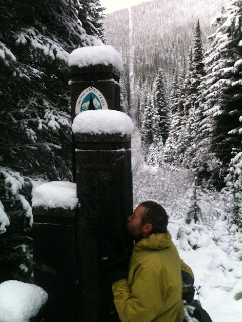 Over the next few days, I pushed hard to get to the famous Monument 78 on the Canada border including a night spent in the shitter at Hart's Pass. I was covered in mouse poop by the time morning came around and the ambient stench in this outhouse was thick but it was blowing sleet outside and I had struck a bargain with the mice: just don't chew any additional holes in my pack and you can eat all you want.